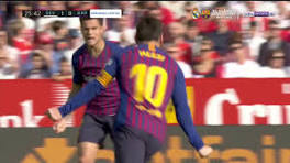 Sevilla 2-3 Barcelona: Messi Completes His Hat-Trick With Late Chip Lionel Messi scored his third goal of the match with a calm chip to give Barcelona a 3-2 lead over Sevilla. Video cannot be played. Please enable ...